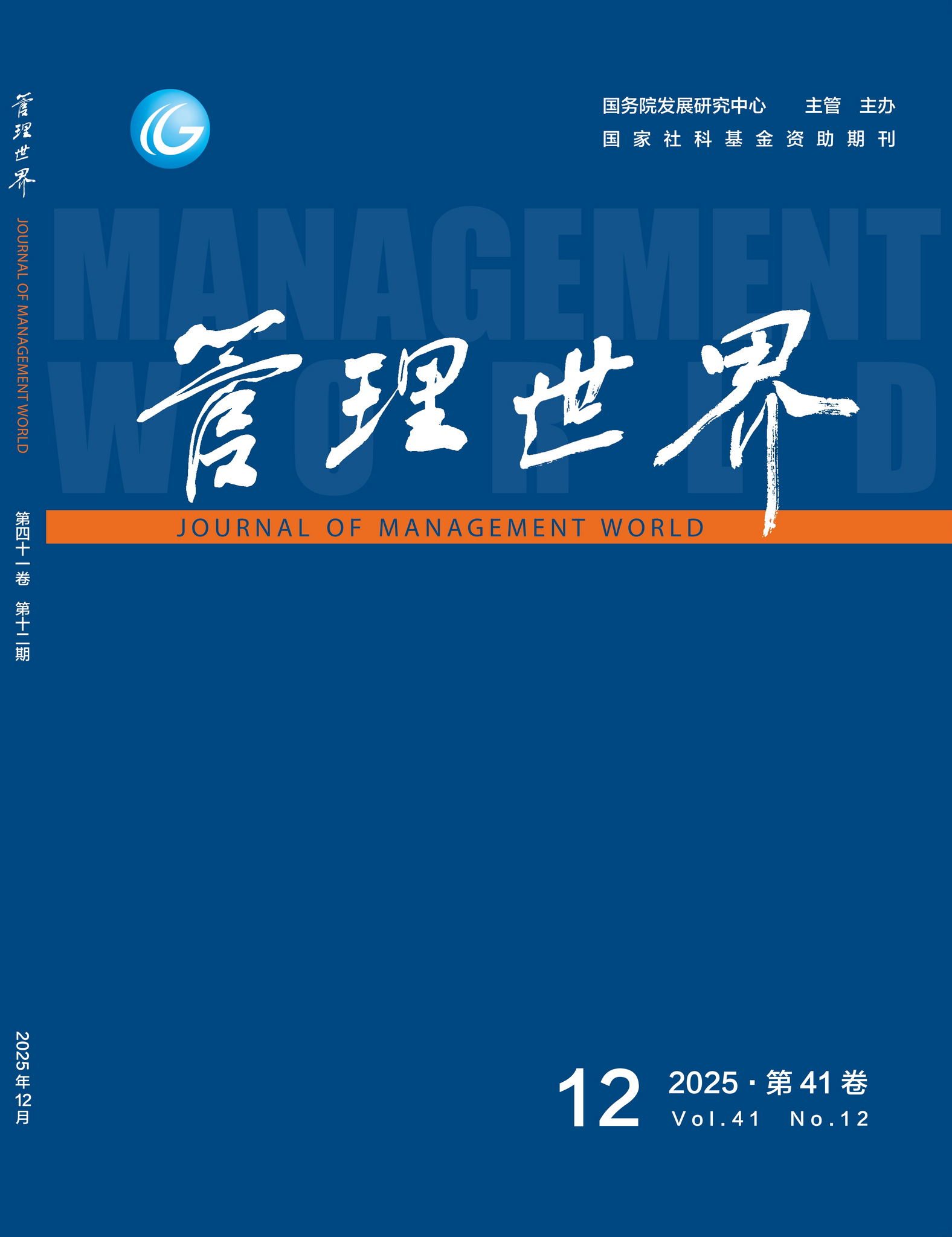 《管理世界》期刊2025年第41卷第12期封面,发布于2025年12月
